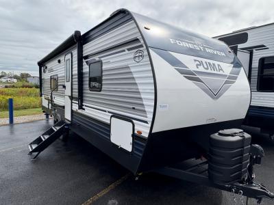 If you're looking for family-fun adventures then you need one of these Palomino Puma fifth wheels or travel trailers! They are built rugged, easy to tow, and jam packed with features. The Darco wrapped underbelly will protect your units vitals and the AlphaPly roofing membrane covers it. They also have new aluminum wheels and a powder coated steel I-beam frame. Inside, the Congoleum linoleum will be easy to keep clean, and the night roller shades will provide privacy when it's time to turn in. You'll also enjoy an electric awning with an LED light strip plus an AM/FM/Bluetooth stereo and two outside speakers to keep the party going!