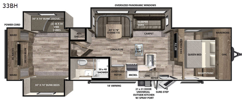 Forest River Vibe travel trailer 33BH highlights: